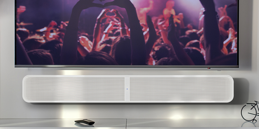 Bluesound Pulse Soundbar + доступен в черном и белом цвете.