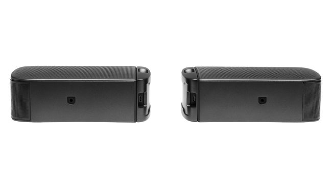 Съемные задние динамики на каждом конце прикреплены набором хороших, сильных магнитов. В док-станции они заряжают свою 10-часовую батарею в течение трех часов, в течение которых они все равно будут работать, если вы смотрите телевизор или слушаете музыку. Однако отсоедините их крепким рывком, и веселье начинается.
