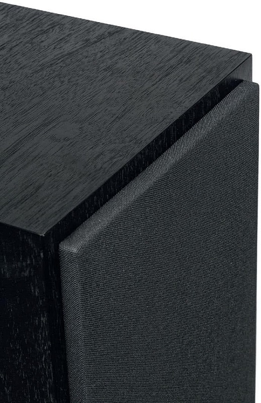 Низкопрофильные, акустически прозрачные решетки закрывают почти всю переднюю перегородку, и они крепятся с помощью магнита, что хорошо, поскольку это означает, что на передней перегородке отсутствуют заглушки, которые наверняка разрушили бы такой красивый дизайн.