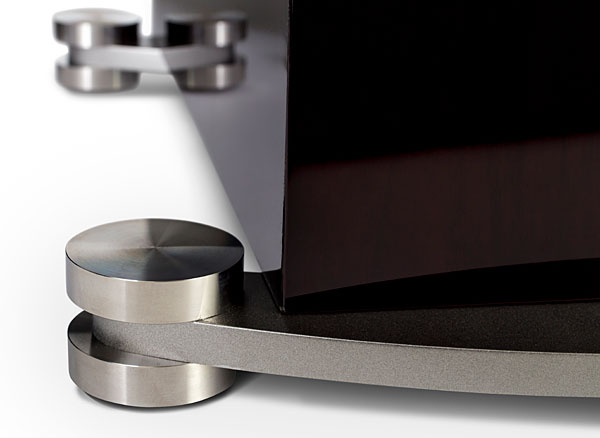 Все напольные модели, включая 95F, которые у нас есть, имеют прочное основание из полированной нержавеющей стали и алюминия, которое изолирует и подавляет вибрации, влияющие на производительность. Основания оснащены двусторонними опорами для твердых и мягких полов. Дизайн основания очень приятный, но, безусловно, немного увеличивает площадь основания колонки. Но поскольку они не предназначены для очень маленьких помещений, это не должно быть большой проблемой.