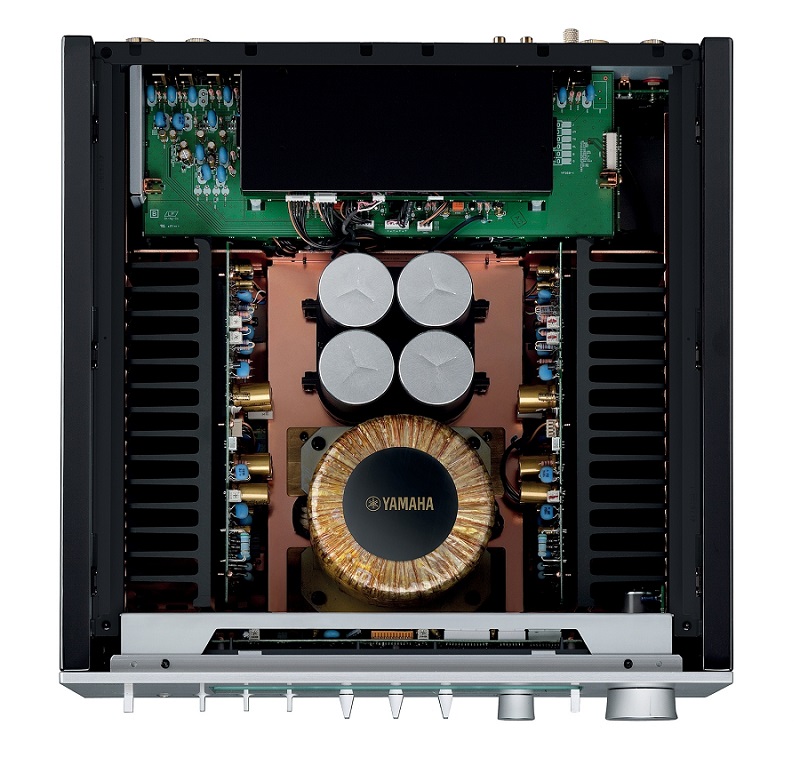 Yamaha A-S3200 не такая старомодна как может показаться на первый взгляд и это доказывает его выходная мощность; Yamaha претендует на мощность 120 Вт на канал на 8 Ом и 200 Вт на 4 Ом для этой конструкции класса AB. Еще в семидесятых такая вспышка энергии была редкостью. Yamaha использует модули питания MOSFET для подачи, с дискретными транзисторами (а не операционными усилителями) на фонофазе; последняя аккуратно разложена на отдельной плате с использованием компонентов хорошего качества. Главная цепь полностью сбалансирована, и имеется большой тороидальный трансформатор с малым током утечки 623 ВА. Очевидное тщательное механическое заземление с использованием толстой внутренней проводки; Кабели PC-OCC используются для питания акустики из секции усилителя мощности. Специально подобранные компоненты, включая четыре больших блочных конденсатора 22 000 мкФ / 63 В, оснащены латунными винтами.